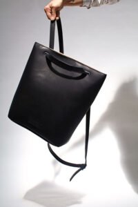 A tote or a backpack. Black premium sustainable metal-free tanned Leather. environmental-friendly. biodegradable and allergy-free. Back in Vegetable Tanned Leather (Nude) Adjustable straps. Outside and Inner pocket with zipper. Dimensions: 37 x 34 x 12cm. Adjustable Straps: 140cm – 80cm. Made in Portugal REF. MMSCTBP